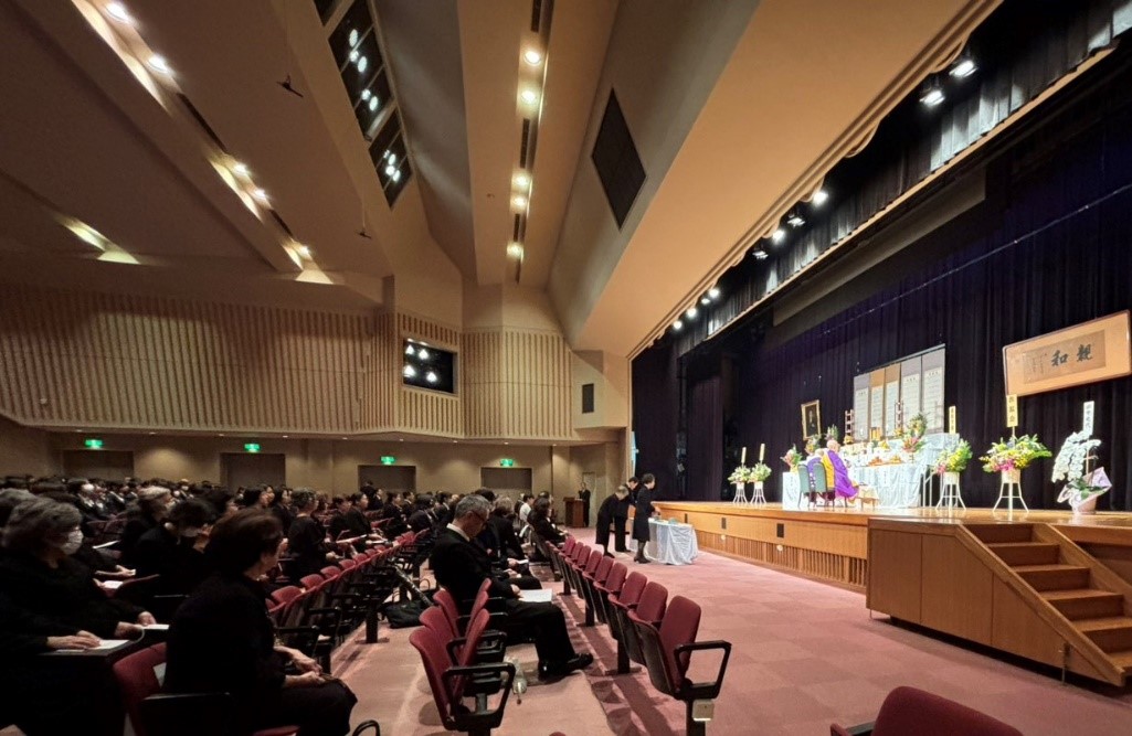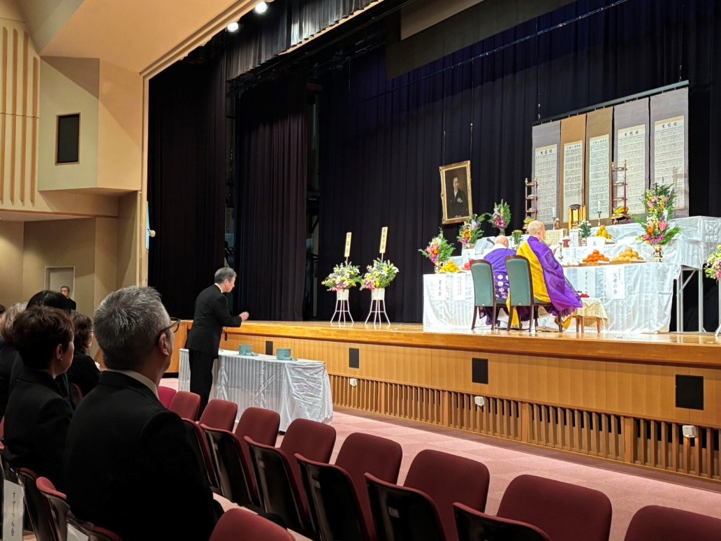 山根理事長の祭文では友國晴子先生の生徒への誠実で思いやりの有る行動や言葉がけなどを先生の口調そのままでお話され、エピソードを交えながらご遺徳を偲びました。